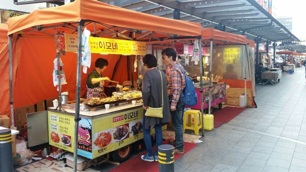 It’s only day 1, but wandering through bustling warrens of restaurants and food stalls, ranging from fascinating to somewhat terrifying, delicious to the very opposite, mundane to unidentifiable, qualifies as a full fledged revelation. They are stacked and packed together in a density usually reserved for bars, brothels or other dens for debauchery. I’ve never seen such intense focus reserved for the taste buds (and electronics, makeup and other sundries of opportunity). Sure, beer and soju (Korean rocket fuel distilled from something benign into a potent hangover-maker) flows, but at least for a few claustophobic blocks between Insadong and the Cheonggyechean stream, chopsticks, soup spoons and greasy fingers are the preferred implements.