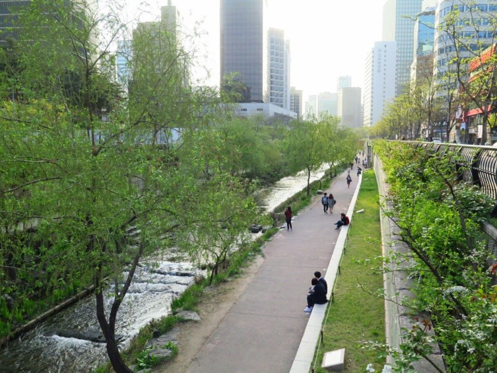 The stream is a revelation as well. A gash of calming green and flowing water in the teaming heart of 10+ million souls. A place for strolling and “light intimacy” between best friends and new lovers. Nothing attracts human company like water.